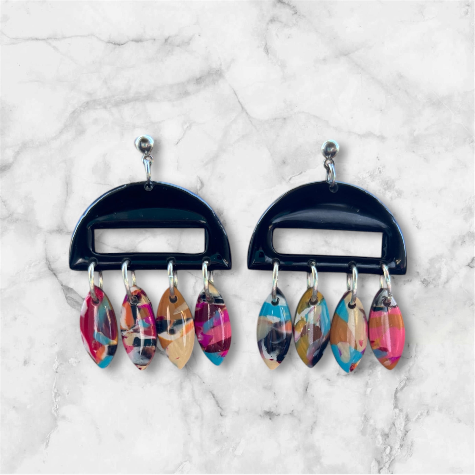 These earrings are made by hand. Each piece may slightly vary among every pair. You are receiving one of a kind! So, please, treat them with care!